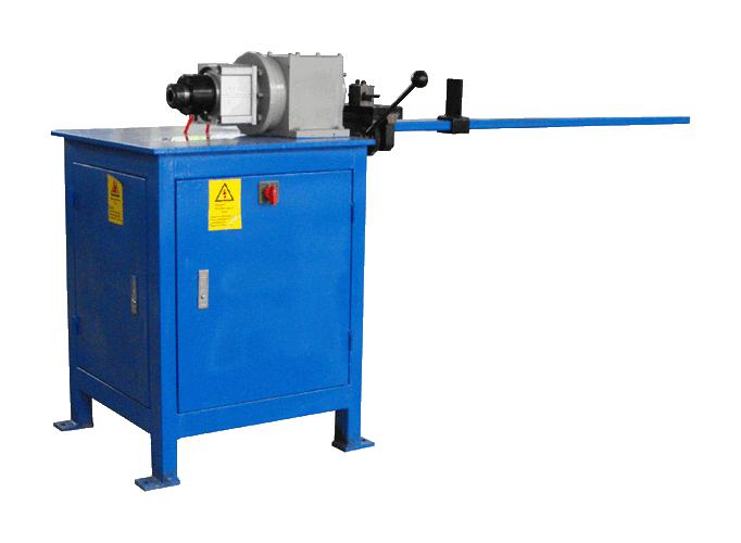 CT-15管材開料機,是利用一套旋轉工裝,管子由彈性夾頭帶動旋轉,利用切斷片將管子切斷下料,利用刀片的角度控制。被斷開后的管子端面基本無毛刺。這樣的下料方法大大省去了用其他切割方法下料時管毛刺的清理工作。氣動機構控制彈性夾頭,與切斷刀操縱桿聯動,生產效率相當高。單板可斷料8000-10000支。限位機構用于調整和控制下料的長度。使用這臺機器時,用戶必須根據機器的中心高自制料筒和支架。